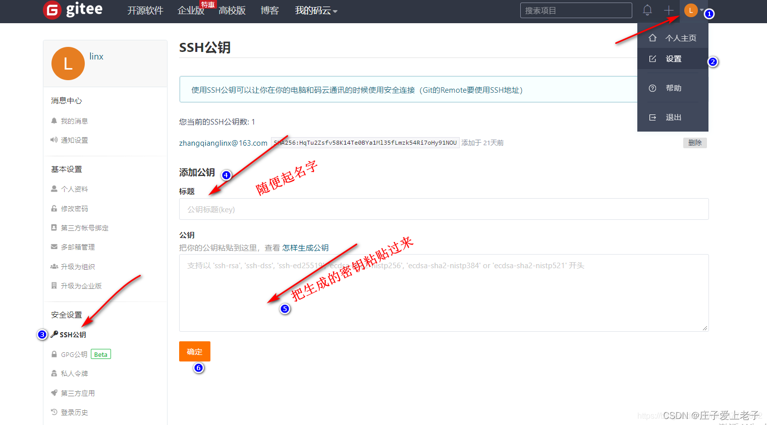 就出来了 将内容复制到gitlab上设置 ssh密钥的地方