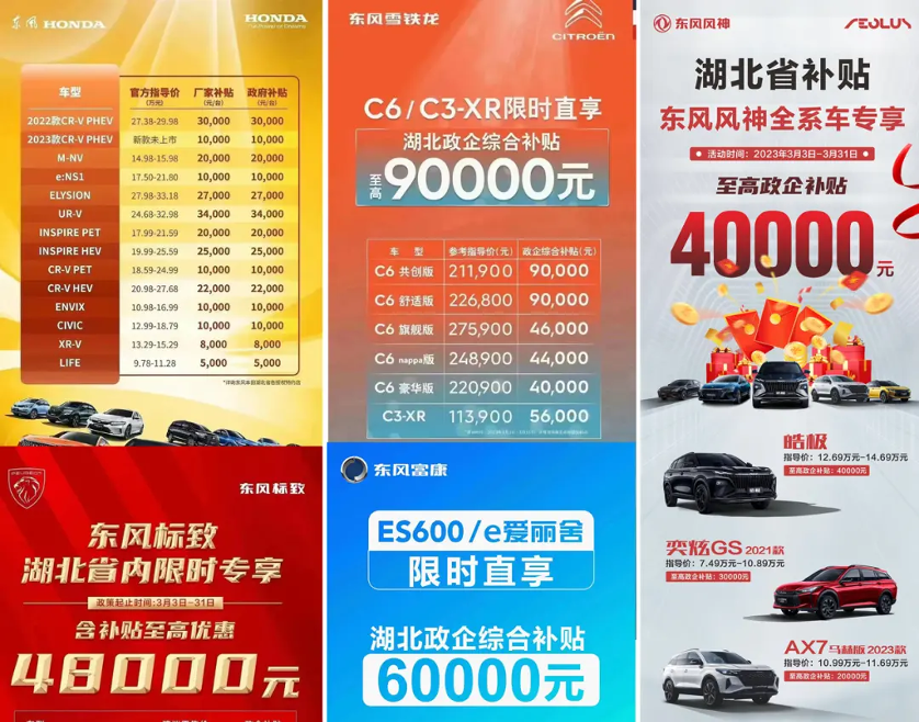 三月初,湖北省推出为期一个月的政企购车补贴举措,联合多家车企推出“史上最强购车优惠季”。