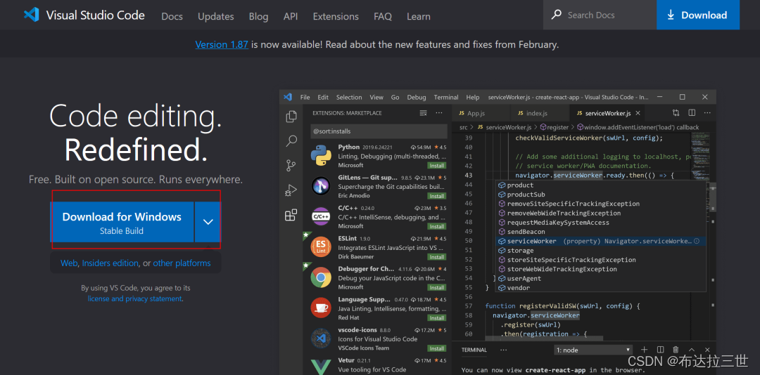 Visual Studio Code,强烈推荐!开源、免费且跨平台的代码编辑器。