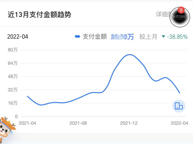 “店铺的销售额从2021年末就开始止不住下滑,而且基本上都是每月40%左右的跌幅。”砂糖橘告诉锌财经。