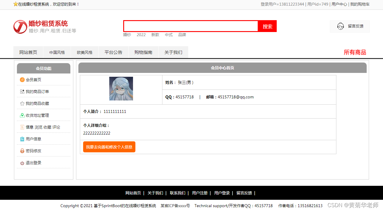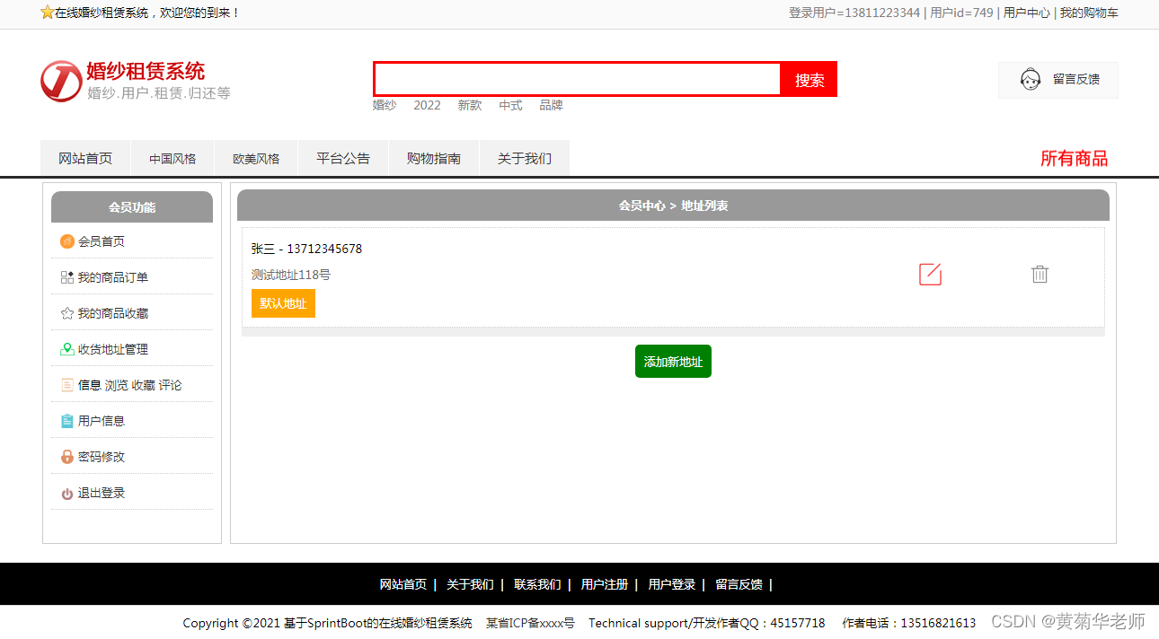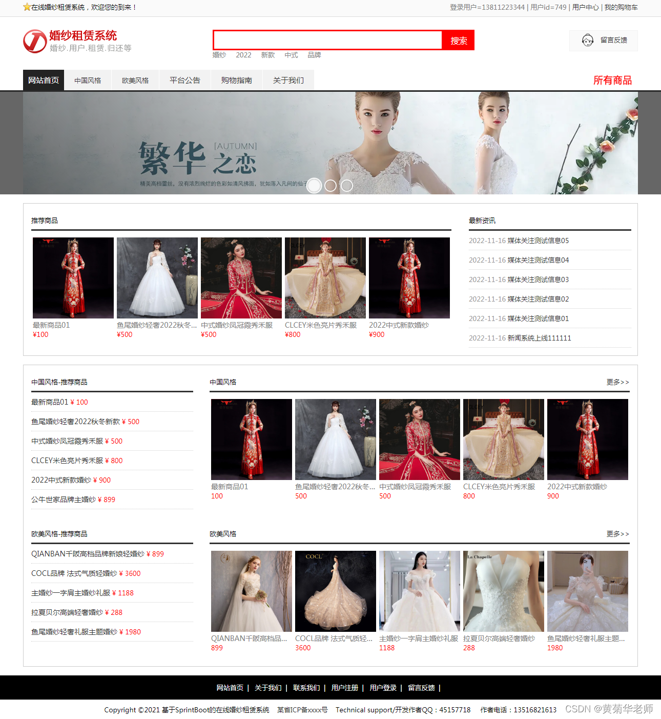 租赁婚纱商品库:后台录入婚纱商品的相关信息,可以在网站商品列表里面一个一个点击进去查看商品详细信息;支持通过查询来查找所需要的商品。