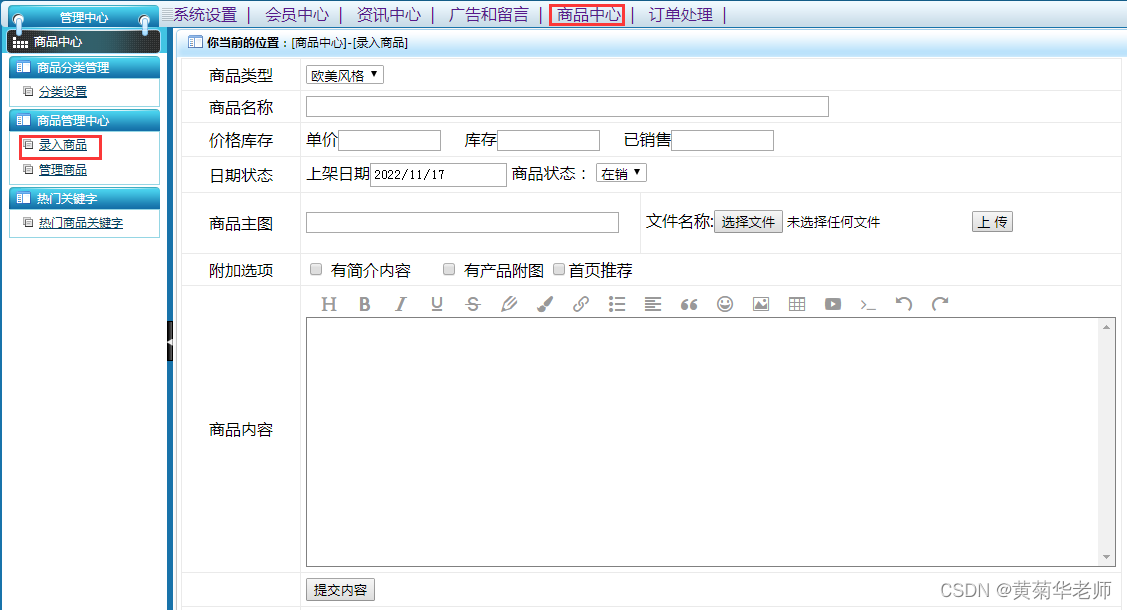 录入婚纱商品:选择分类,录入婚纱商品名称,价格,属性,图片,介绍等
