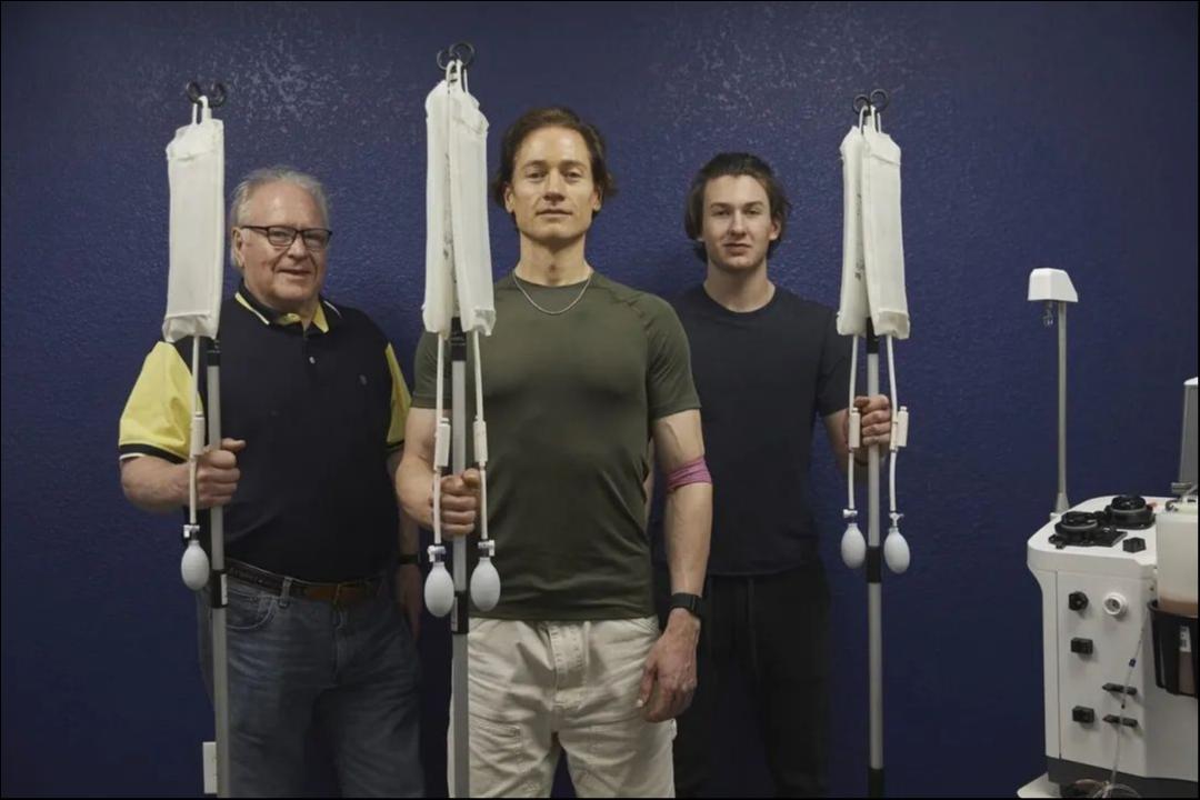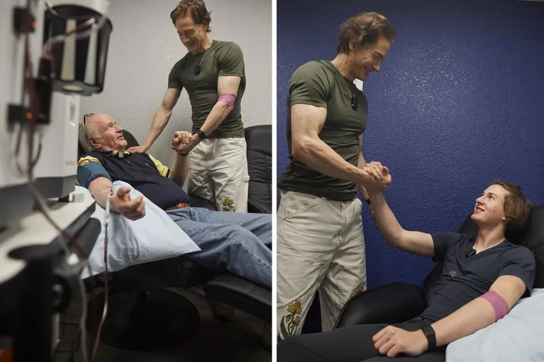 今年4月3日,45岁的科技企业家约翰逊带着70岁的父亲理查德(Richard)和17岁的儿子塔尔马奇(Talmage)来到美国达拉斯附近的一家医疗服务诊所。他们一大早就到了,在几个小时的时间里,他们进行了三代人的血浆交换。