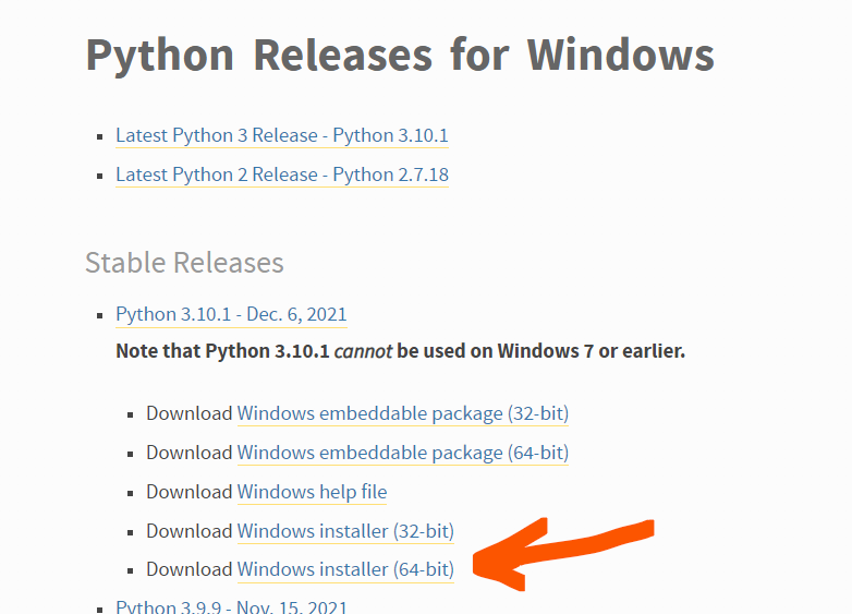 官网:Python Releases for Windows | Python.orghttps://www.python.org/downloads/windows/
