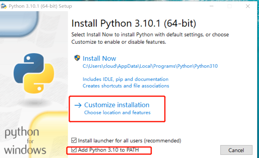 勾选配置环境变量,选择自定义安装。不提示的就是默认安装就行。