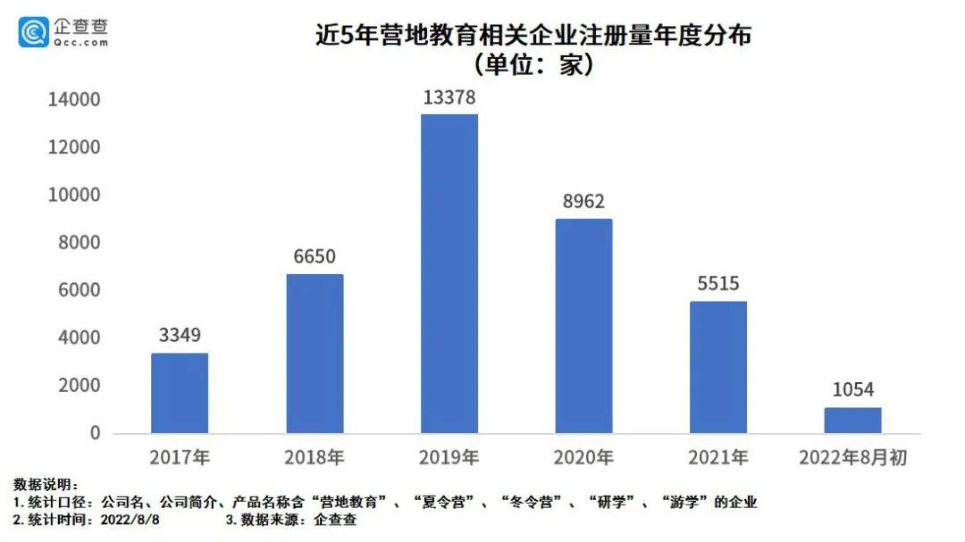 企查查数据显示,全国现存营地教育相关企业已达3.8万家。其中,2017至2019年期间,营地教育相关企业注册同比增速始终在55%以上,2019年营地教育相关企业注册量更是高达13378家。