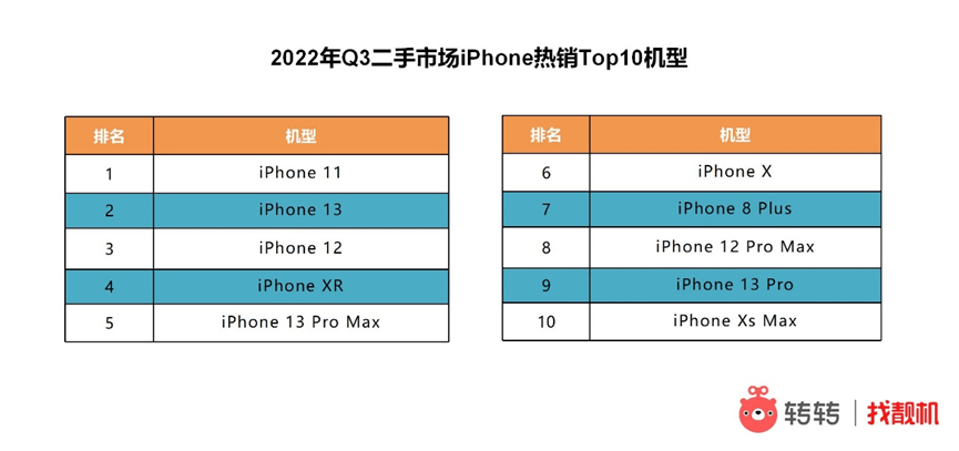 此外是在国内市场手机出货量下跌两成的情况下,二手手机成交量却增长了两成,从整个二手市场的手机交易量排名看,苹果依旧占据第一位置;在转转总交易量Top10机型榜单中,iPhone占据9席。其中,iPhone11已4个季度蝉联第一。