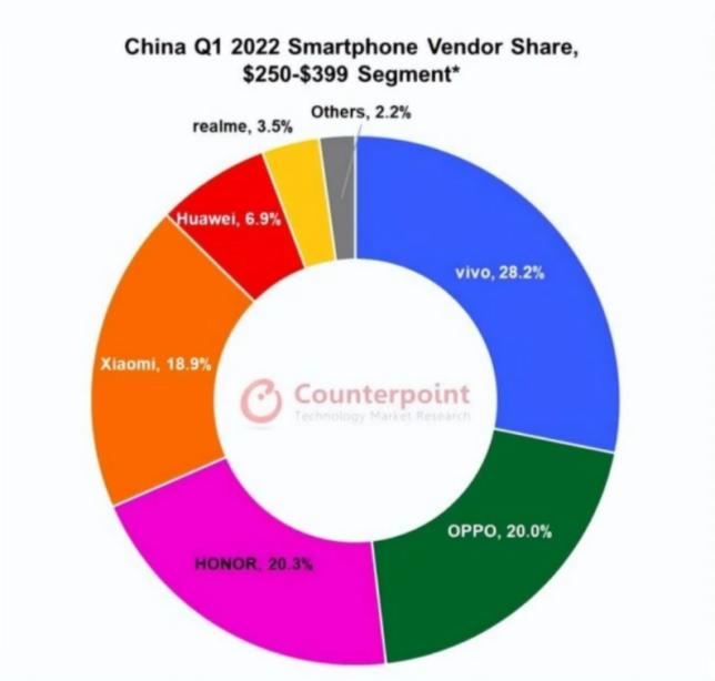 日前,Conterpoint公布了国内手机市场数据,2022年第一季度,vivo在中高端市场以28.2%的市场份额摘得桂冠,OPPO以20%的市场份额位列第三,两家占据了市场的半壁江山。然而,数据也表明激进并不一定总能胜过保守,OPPO的市场份额与vivo差了不少。