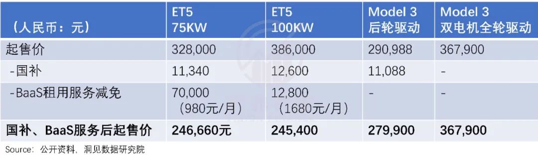 至于产品定价上,ET5正常起售价32.8万,如果选择BaaS方案,价格可以打到30万以内。