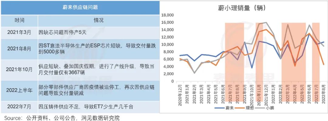 但影响供给的不只是产能,还有供应链。而这一块,蔚来的不稳定性极大。