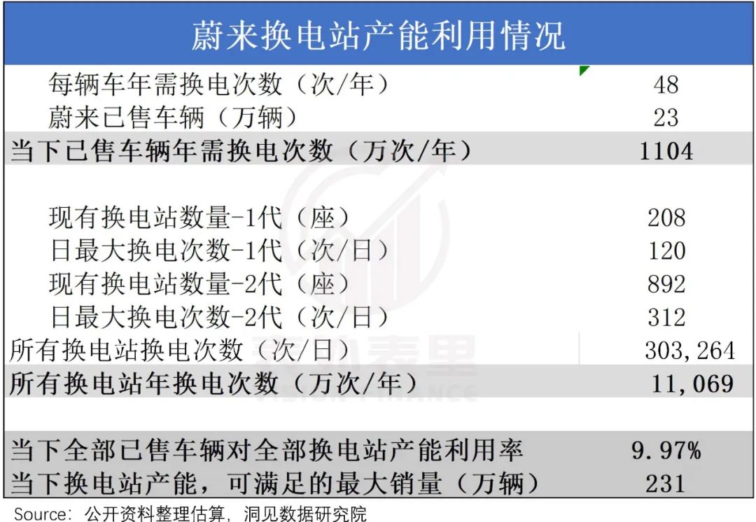 以主打的换电服务来说,经粗略估算,当前蔚来换电站能产能利用率不到10%,有足够冗余承接销量增加。且蔚来计划在2025年前,再修建约3000座换电站,据其财报来看,亦有足够资金支持。