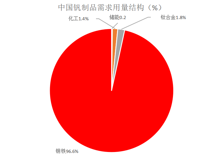 截至2021年,国内钒产量超过5万吨,对应的五氧化二钒产量为11万吨以上,占全球总产量的七成左右,其中,超过90%的钒被应用于钢铁生产,用于提高钢的强度、韧性、延展性和耐热性。据悉,含钒合金钢被广泛应用于输油/气管道、建筑、桥梁、钢轨等生产建设中。