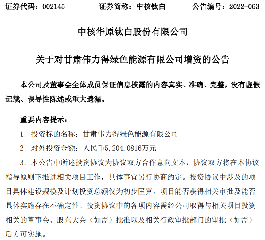 与此同时,中核钛白还披露了2022年一季报,公司实现营业收入14.89亿元,同比增长20.52%;实现归母净利润3亿元,同比增长4.61%。
