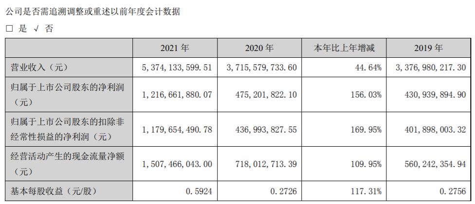 4月26日,中核钛白披露了2021年年报,报告期内,公司实现营业收入53.74亿元,同比增长44.64%;实现归母净利润12.17亿元,同比增长156.03%,均创历史新高。