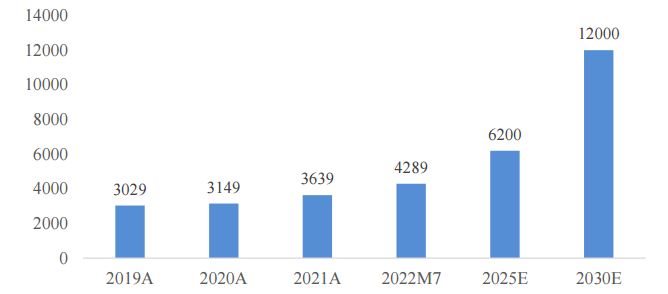 先看大型抽水储(蓄)能,根据国家能源局规划,到2025年和2030年,我国抽水储能装机规模将分别达到6200万千瓦和1.2亿千瓦。如果按照6000元/kw造价计算,到2030年,抽水储能行业投资总规模将达到1.6万亿元,年均投资额超1600亿元。