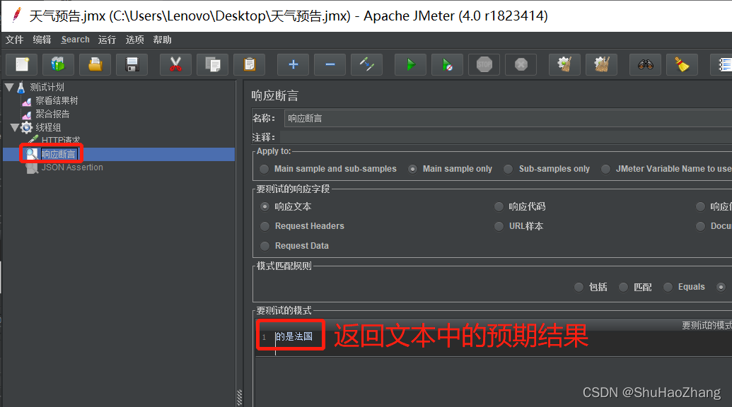 作用:断言(Assertions)可以用来判断响应的数据是否符合预期