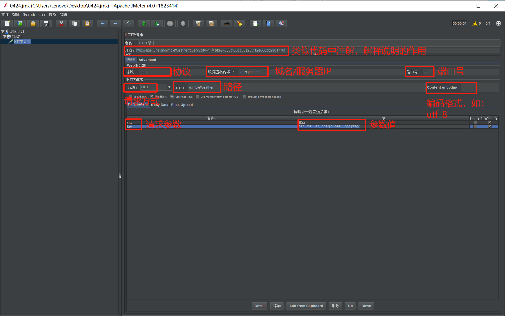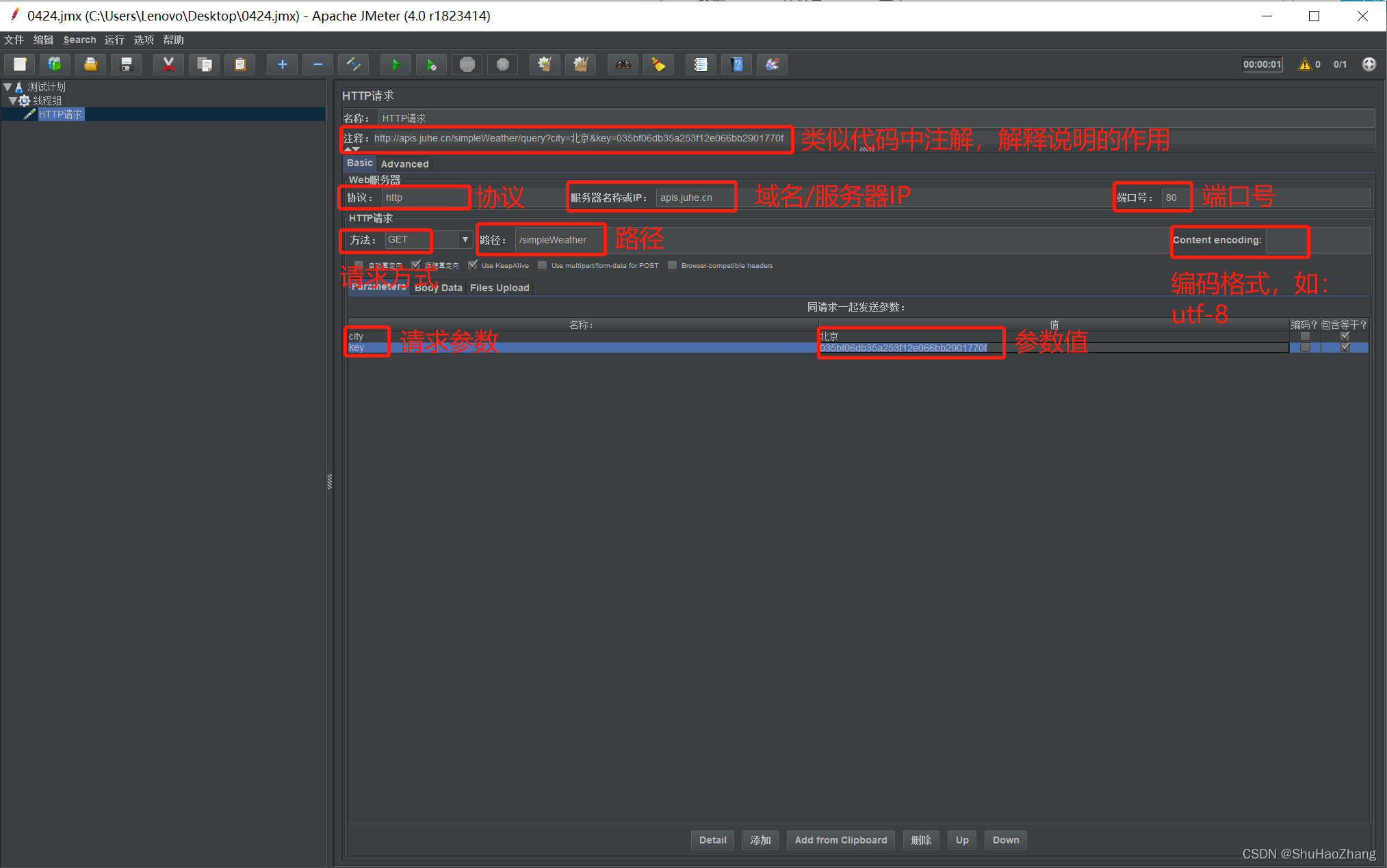 操作:在线程组>>添加>>sampler>>http请求(常用)