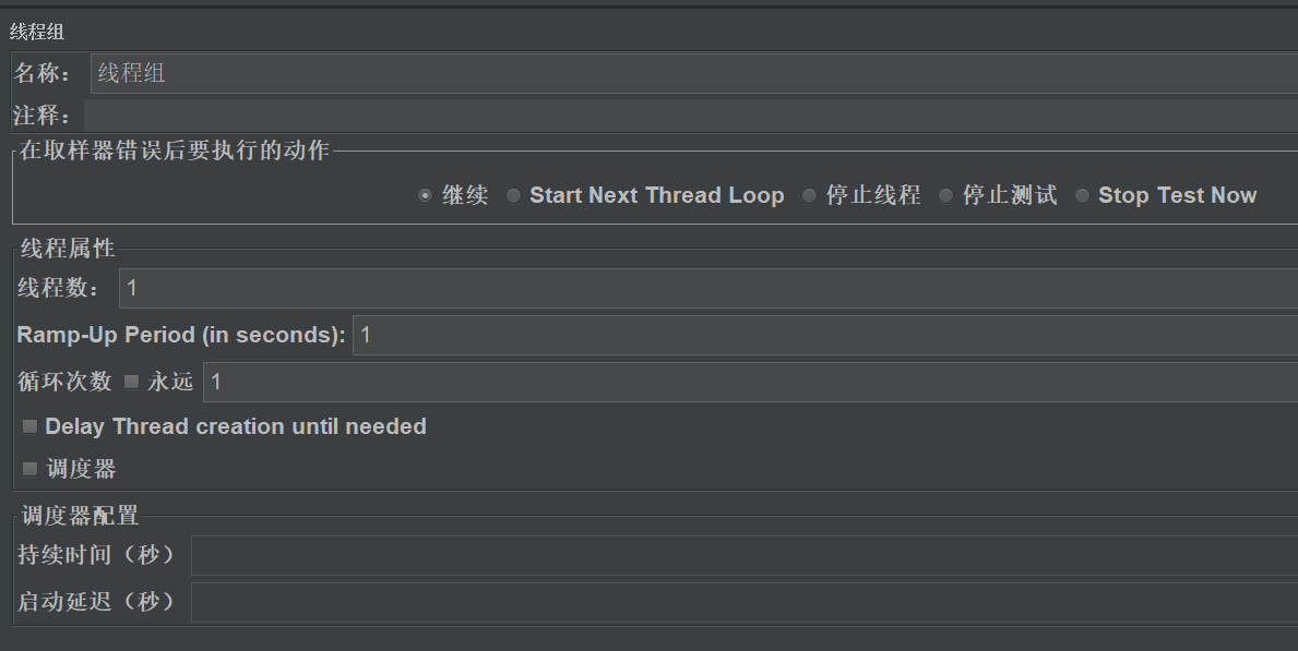 5、调度器:设置线程组启动的开始时间和结束时间(配置调度器时,需要勾选循环次数为永远)
