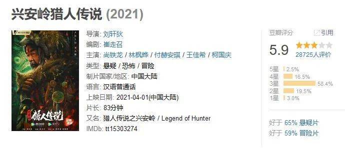 因此在该片上线后,立刻在网络上引发了巨大反响,甚至一度获得过6.1的豆瓣“高分”。如今一年过去,该片依旧停留在豆瓣5.9,这样的口碑在网络电影领域乃至整个恐怖片大类里都算得上中上水准。而市场也给予了《兴安岭猎人传说》充分反馈,最终该片凭借4429.1万的总分账成绩高居去年全年分账冠军。