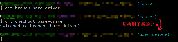 git checkout -b 可以直接创建并切换到新的分支,使用方式如下: