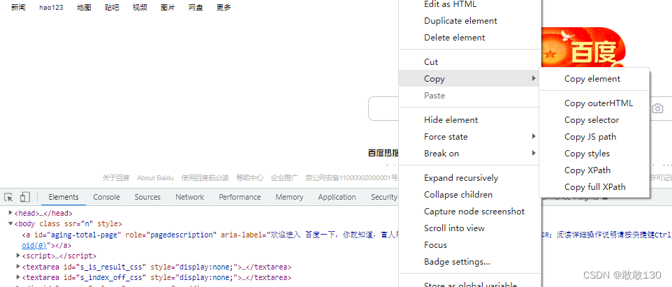这里就图片效果展示不出来,先是F12检查然后在下面右键检查找到Copy--->里面有很多操作方式,其中一种就是Copy XPath就是我们使用的一种方式