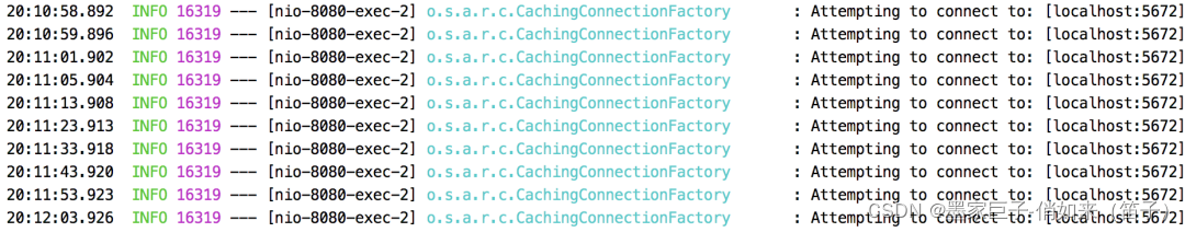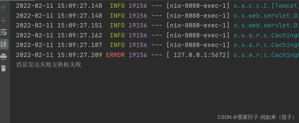 再次启动 Spring Boot 项目,然后关掉 MQ,此时尝试发送消息,就会发送失败,进而导致自动重试。