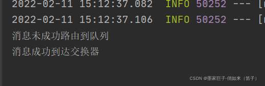 我们后台效果看出了发送到对列失败了,我们的回调监听到了,这就是 publisher-confirm 模式。相比于事务,这种模式下的消息吞吐量会得到极大的提升