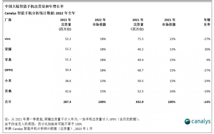 此前IDC数据显示,2022年全球智能手机市场整体出货量跌落至12.1亿部,同比下滑11.3%;作为全球最大智能手机市场的国内市场,则是十年来智能手机出货量首次跌破三亿大关,同比下降13.2%,仅为 2.858亿部。