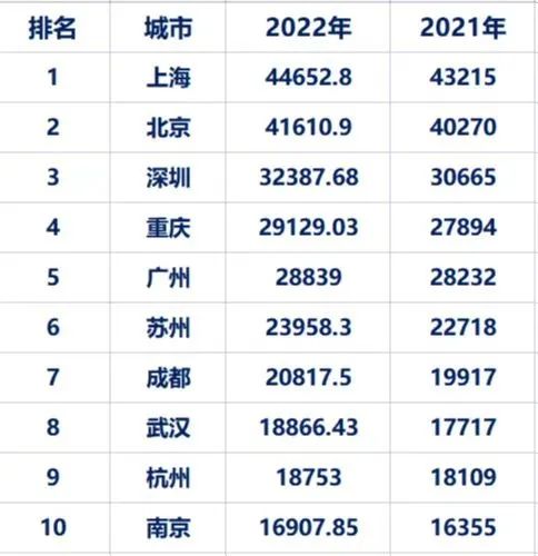 2022年,成都经济总量为20817.5亿元。重庆则反超广州,以29129.03亿元排到全国第四位,比成都多了8000多亿元。