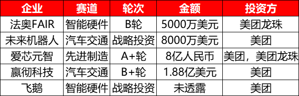 结合IT桔子数据,2022年美团投资的所有项目都处于汽车交通先进制造和智能硬件领域。
