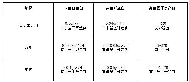 ②与欧美相比,国内血制品人均用量上还有不小的差距。