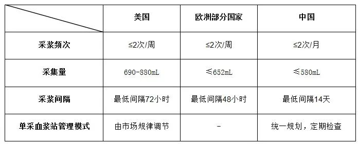 上世纪末,由于采浆的巨大利益,导致许多大量地下采浆站出现,不规范、不卫生的操作导致疾病传播、卖血现象频频。自此后,国家层面下达了无数严苛的红头文件,导致中国采浆政策规定的采浆频次、采集量、采浆间隔相比于欧美国家更加严格。