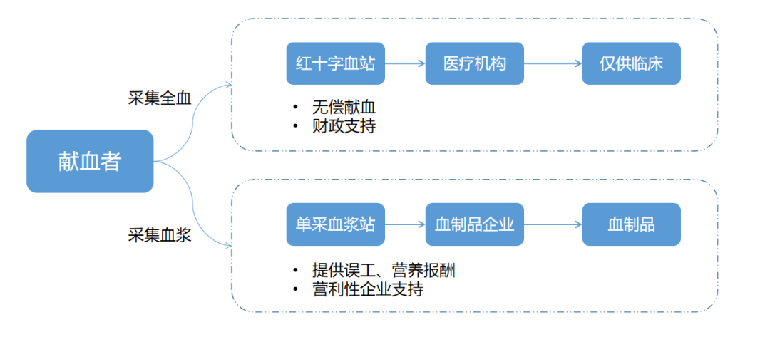 “双轨制”即医疗机构输血用血浆与企业生产成分血液制品无交集,医疗机构输血后,剩余血浆不允许提供给企业医疗机构输血。