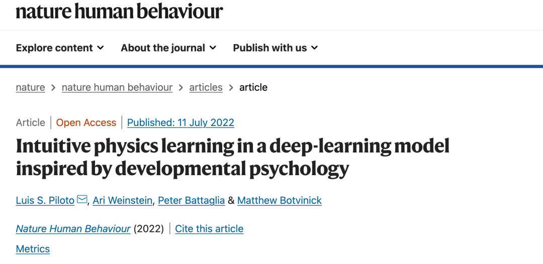 相关研究论文以“Intuitive physics learning in a deep-learning model inspired by developmental psychology”为题,已发表在科学期刊 Nature Human Behaviour 上。