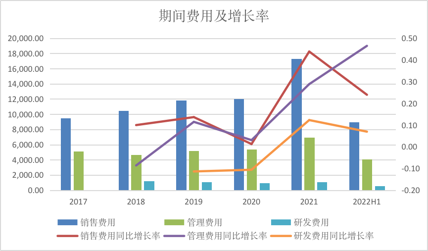 盈利能力方面,三夫户外毛利率虽然一直保持高位,但期间费用居高不下导致公司已经3年连续亏损。就今年上半年来说,公司毛利率为58.8%,但销售费用、管理费用也持续增长,分别为8956.49万元和4081.85万元,合计1.30亿元,占营收的比例高达55.03%。