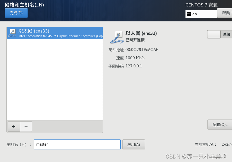 Hadoop平台的搭建需要一个主节点,多个副节点。在centos7中创建主机Master后,克隆主机为slave1与slave2,为保证从Hadoop平台的稳定选择完整克隆。