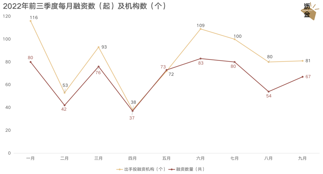 然而受机构合伙人子女寒暑假影响,投资起数在7、8连续两月又有小幅回落,直至9月开学季回归工作后再度攀升,但距离年初仍有一段距离。
