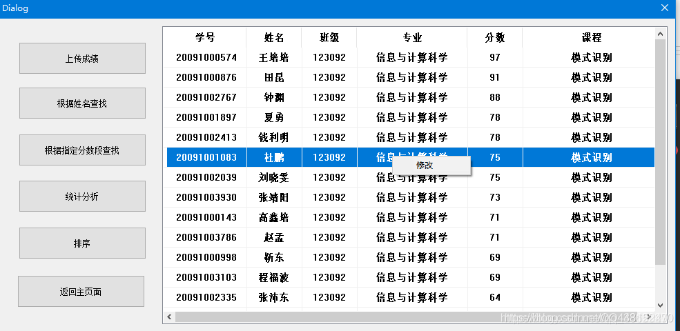 (5)能够对某一课程的所有学生成绩或某一班级的成绩进行排序。