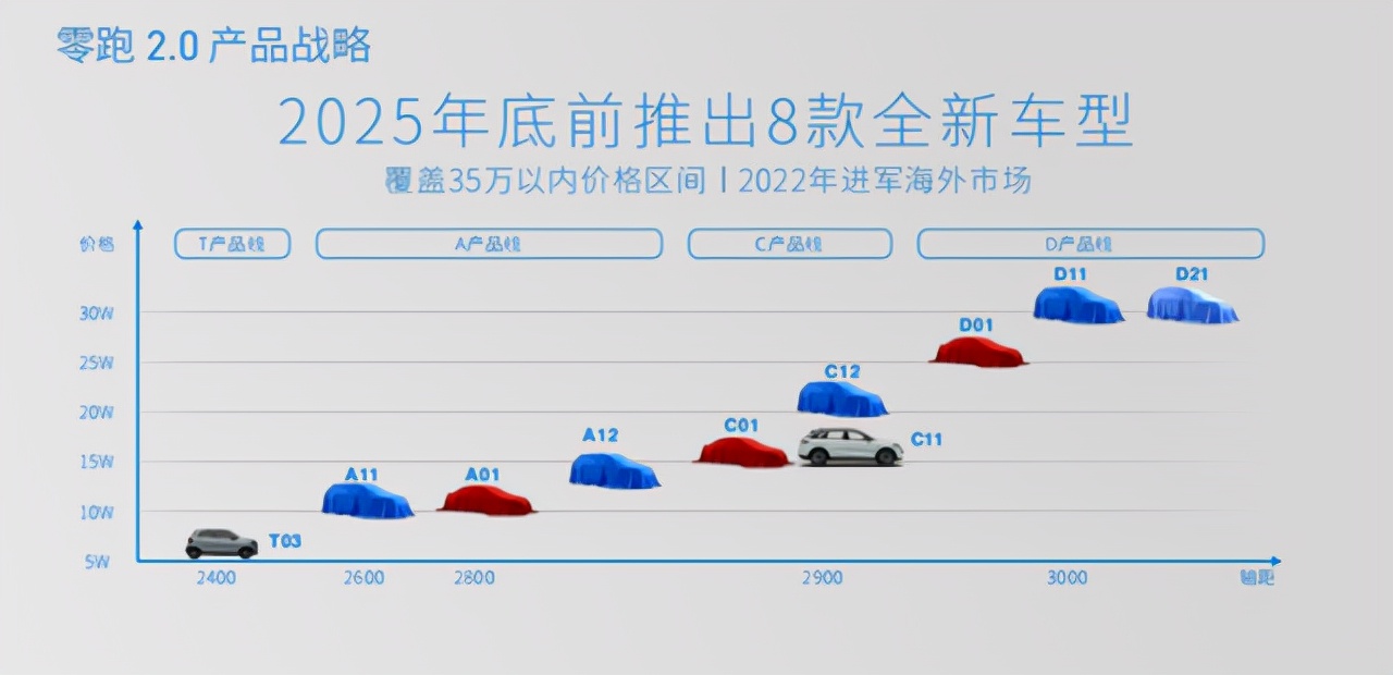无独有偶,去年7月中旬,零跑汽车在新车发布会上宣布了“零跑2.0”战略,表示将在 2025 年底前推出 8 款车型,从其官方计划来看,未来将推出的八款车型同样是将围绕20万这一价位展开。