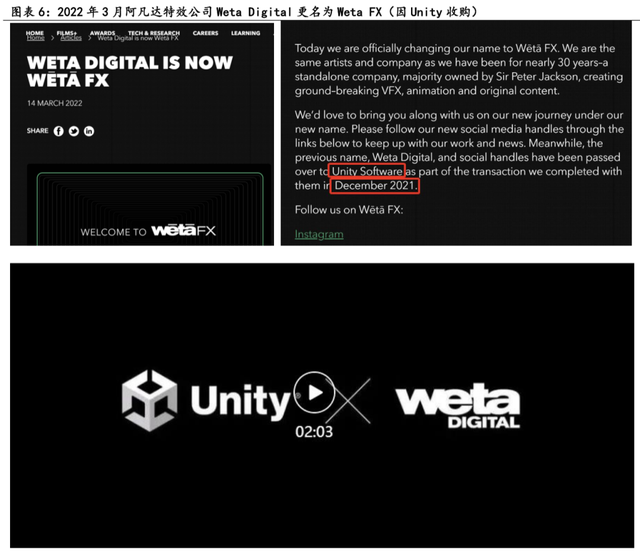 2021年11月10日,Weta Digital被Unity以现金和股票组合的形式出资16.25亿美元收购,在2021年12月该交易完成,随即Weta Digital更名为Weta FX。