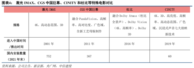 据拓普数据,2021年国内1245间特殊电影影厅的票房产出为20.95亿元,占全年综合票房的4.43%,显著高于特殊电影影厅的数量占比1.51%。