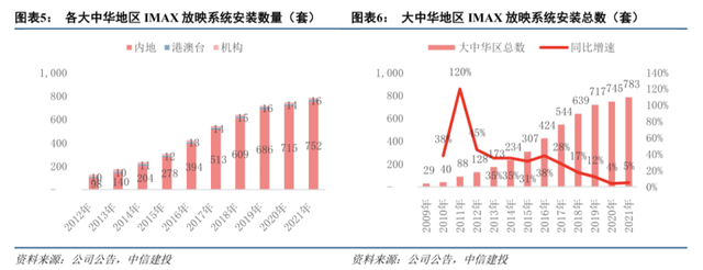 到2021年末,IMAX在内地已经有752块银幕,在特殊电影银幕中的市占率为60.40%,包括香港、澳门和台湾等地区,及安装于博物馆、水族馆等机构在内,大中华地区共有783块。