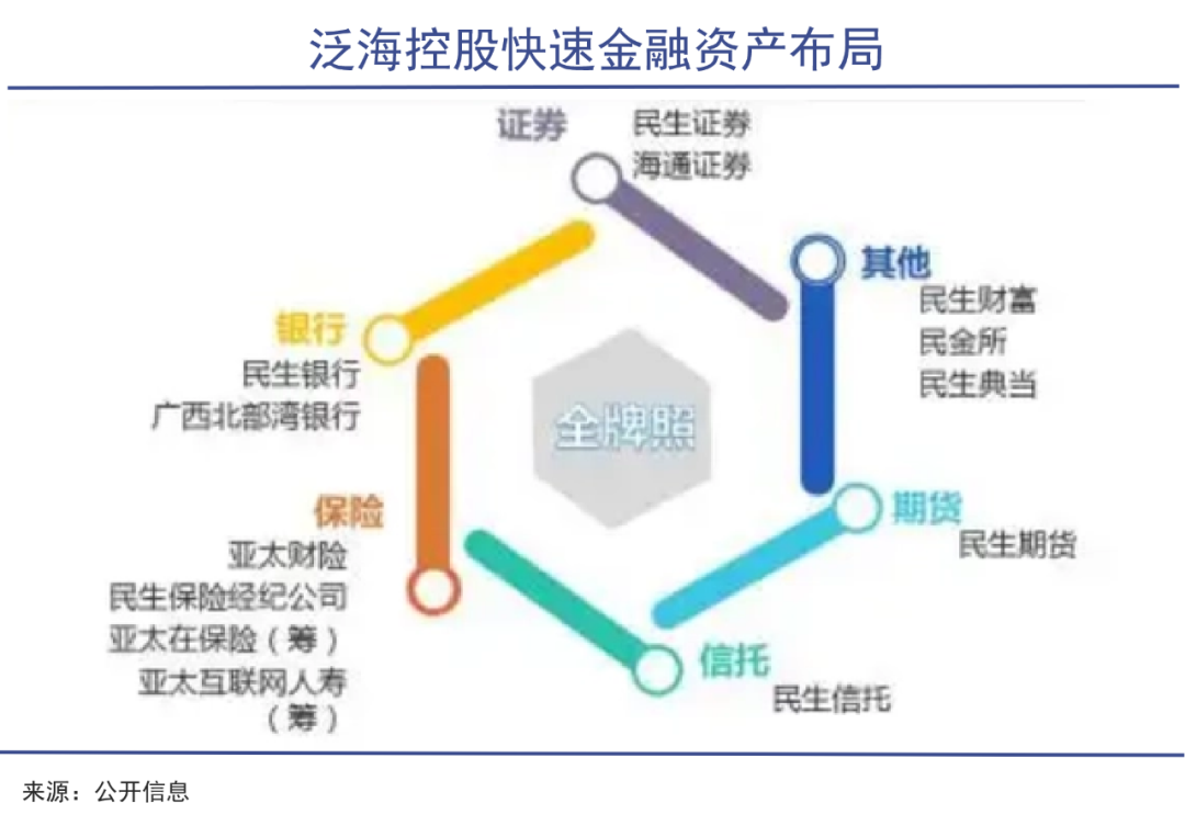 他以地产起家,后又切入金融领域,主打“地产+金融”的双主业。2014-2016年短短三年间,卢志强斥资400多亿,扫荡式入主民生信托、民生证券等,通过一系列并购入股,一个金融全牌照的“泛海系”金控大厦很快落成。