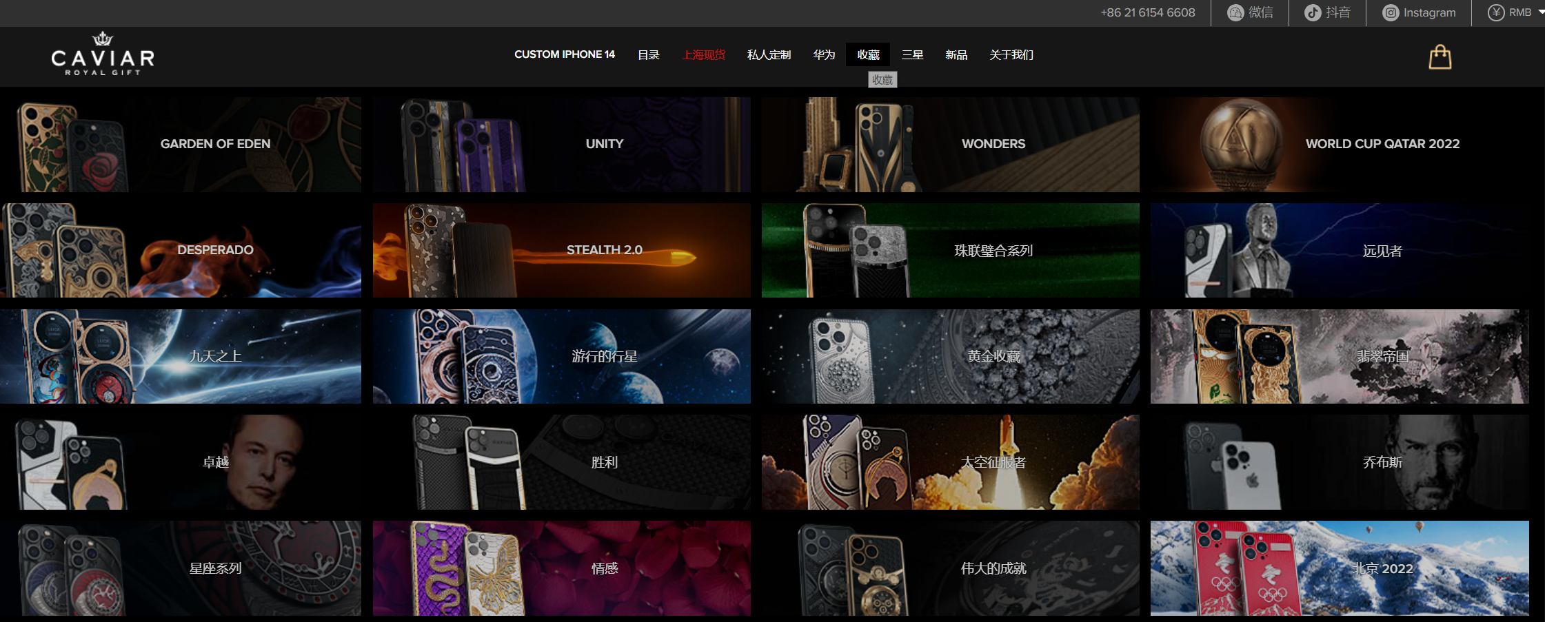 第一种是堆料,别误会,堆得不是硬件配置,而是金银珠宝,代表企业Caviar。该公司推出了许多基于苹果手机、三星手机、华为手机、索尼PS游戏主机的奢侈品,不但造型独特,外壳所用的材料也极为高档,碳纤维、纯金、铂金等都不稀奇。