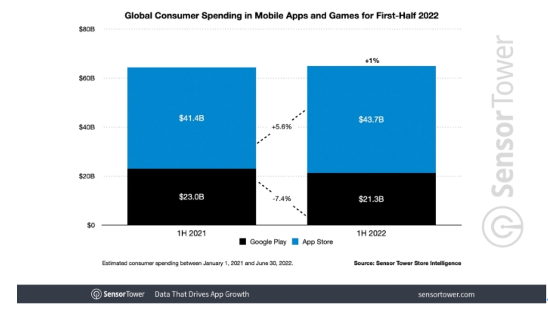 2022年上半年消费者在手机应用的消费,图/Sensor Tower