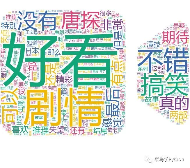 可以看到,与豆瓣评论者明显不同的是,猫眼影评者的关键词都是关于“好看”、“不错”、“搞笑”‘、“可以”等积极的评价,与猫眼高评分相呼应。