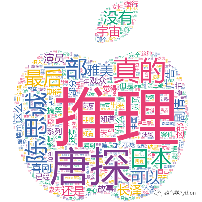 上图中,可以看到,超过了66%的影评者给出了“较差”或者“很差”的评价,而给出力荐和推荐的影评者不到20%。看来这一次唐探在豆瓣的评分真的是扑街了。光有评分还不够,我们通过影评词云的展示,来看看大家对于这部电影的评价吧。