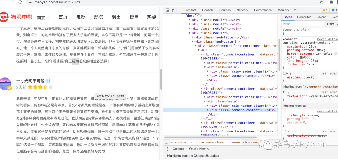 然后主体的程序我们用循环遍历解析每个网页,然后提取短评即可。