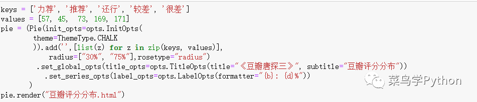 上图程序中,我们利用饼形图来进行豆瓣评分的可视化展示。