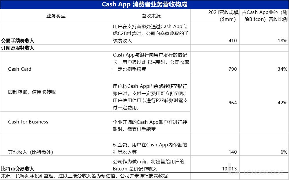 可见只要 Cash App 能守住当前的市场地位,即便在相对中性的预计下,该业务的用户量也还有一倍以上的增长空间。那么在用户规模增长的驱动下,Cash App 下各业务营收有多少增长空间?分别来看: